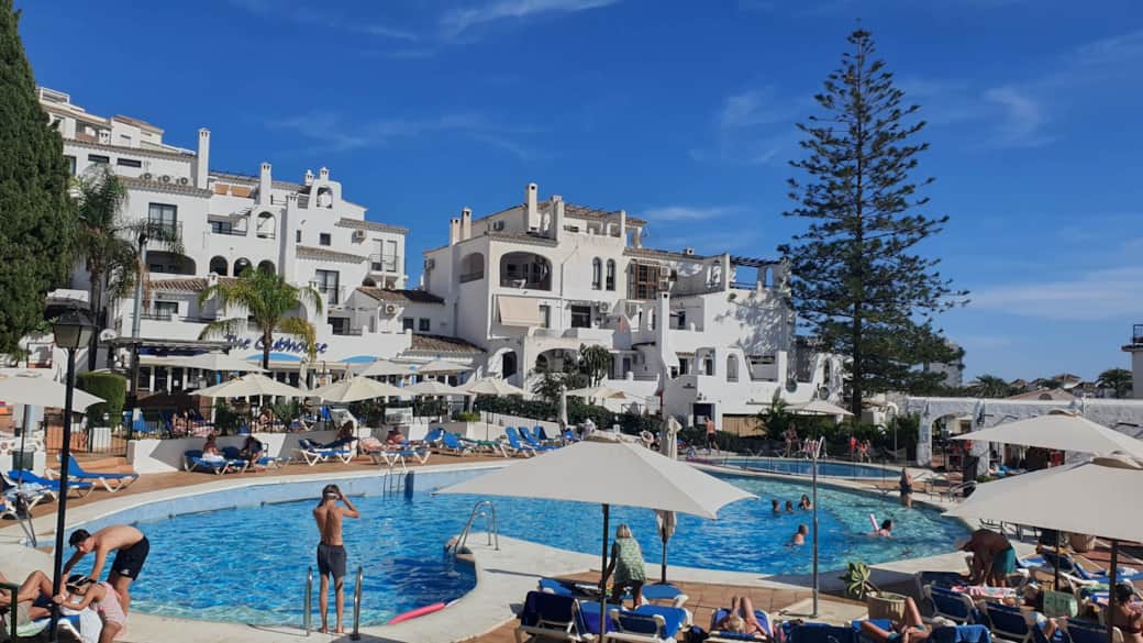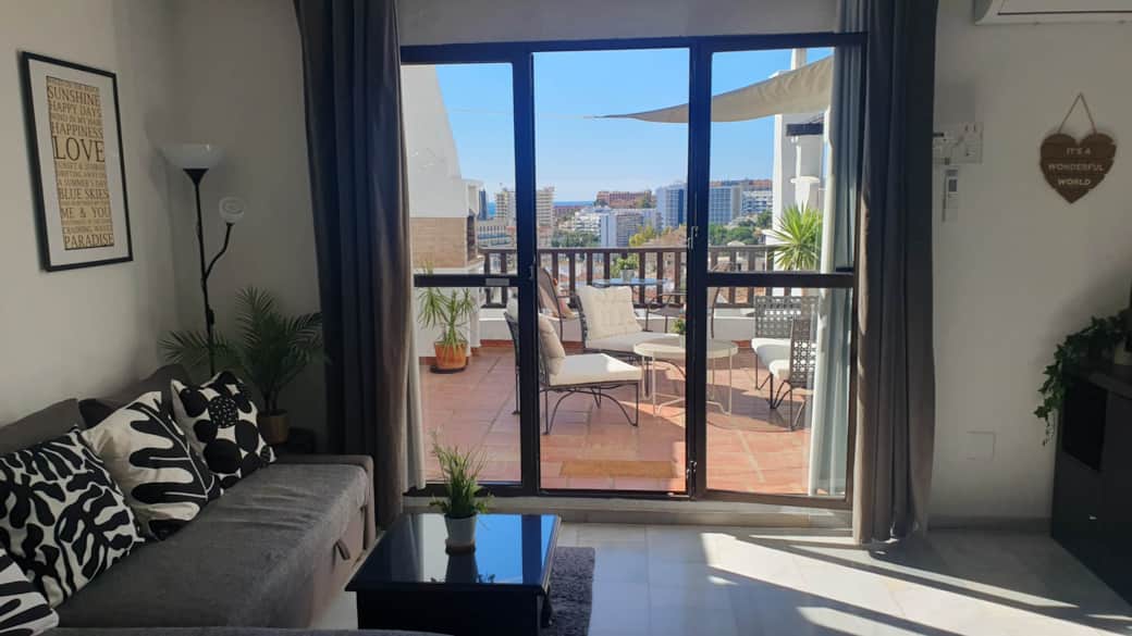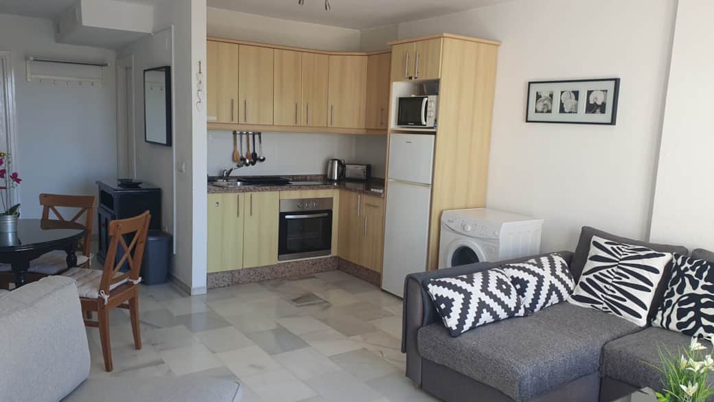 Este elegante apartamento se encuentra en el popular complejo Pueblo Evita, conocido por su arquitectura andaluza y su ambiente acogedor.